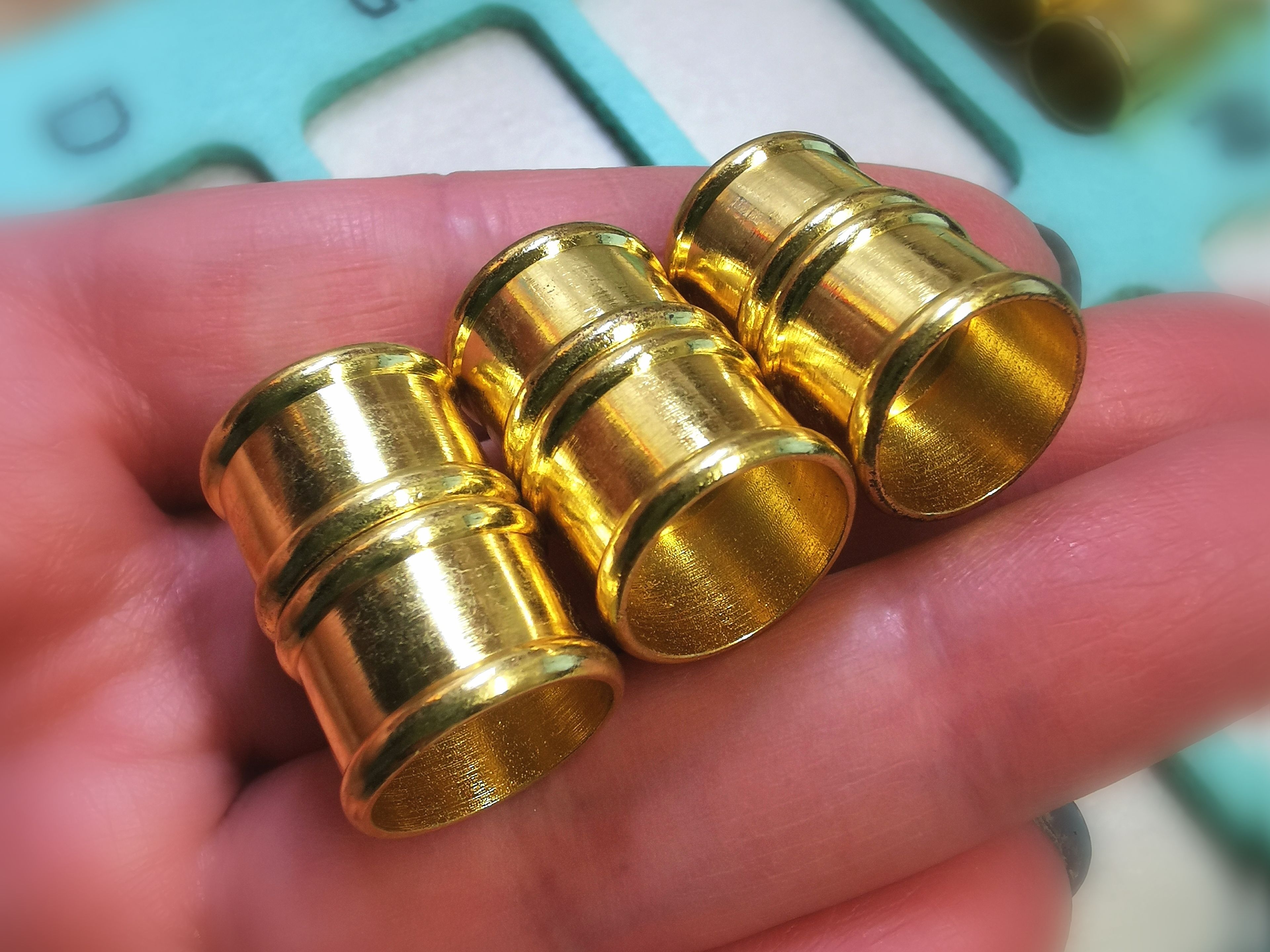 ЦВЕТ ЗОЛОТО МАТЕРИАЛ МЕТАЛЛ / ЛАТУНЬ ДИАМЕТР ОТВЕРСТИЯ 12мм РАЗМЕР 21*14мм Цена за 1 застежку (из 2х половинок) Застежка-колпачок с внутренним диаметром 12мм подойдет для жгута из Чешского бисера Preciosa 10/0 на 16 бисерин в круге (зависит от материалов, плотности и индивидуальных особенностей вязания).