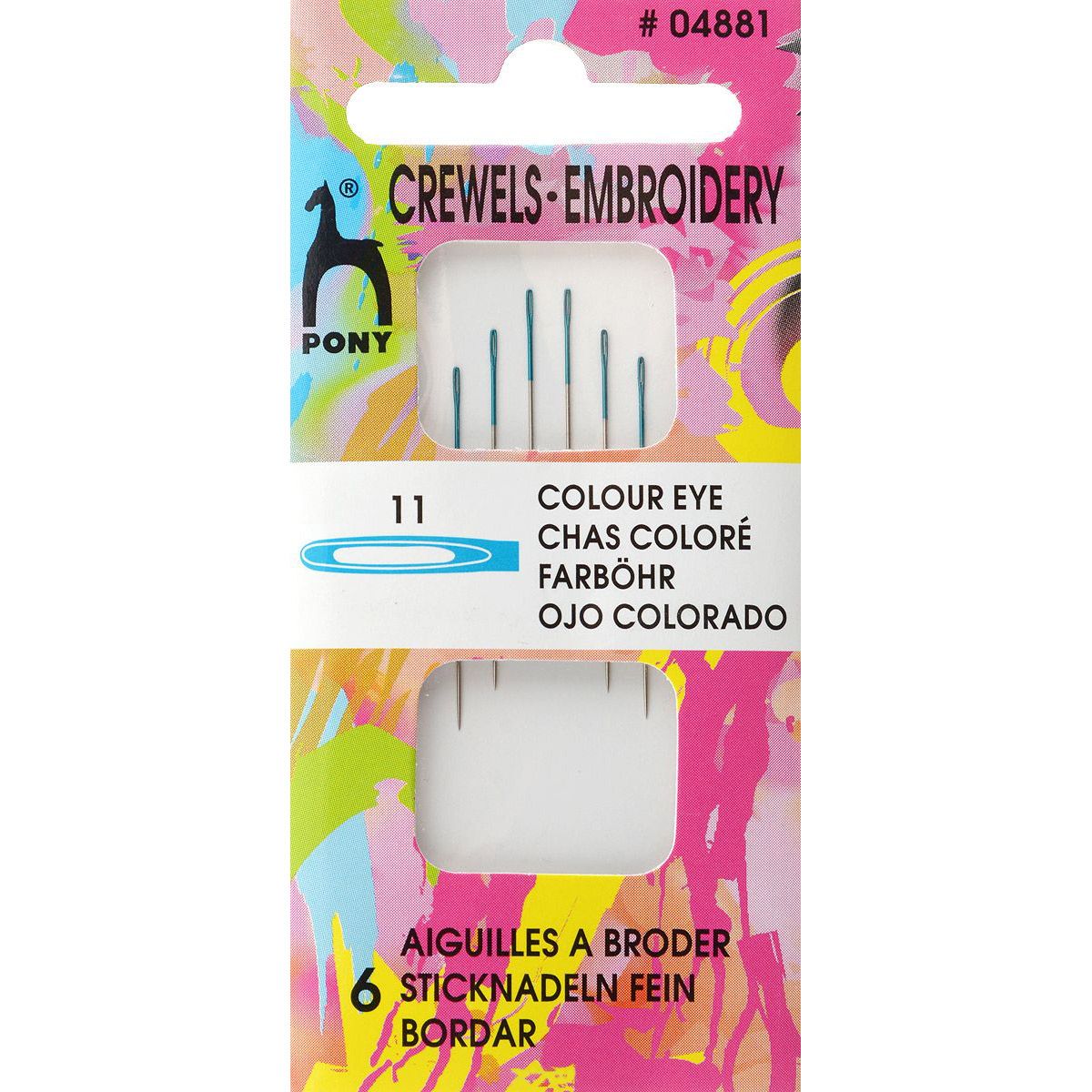 04881 PONY Иглы для бисера № 11, 6 шт, цветное ушко