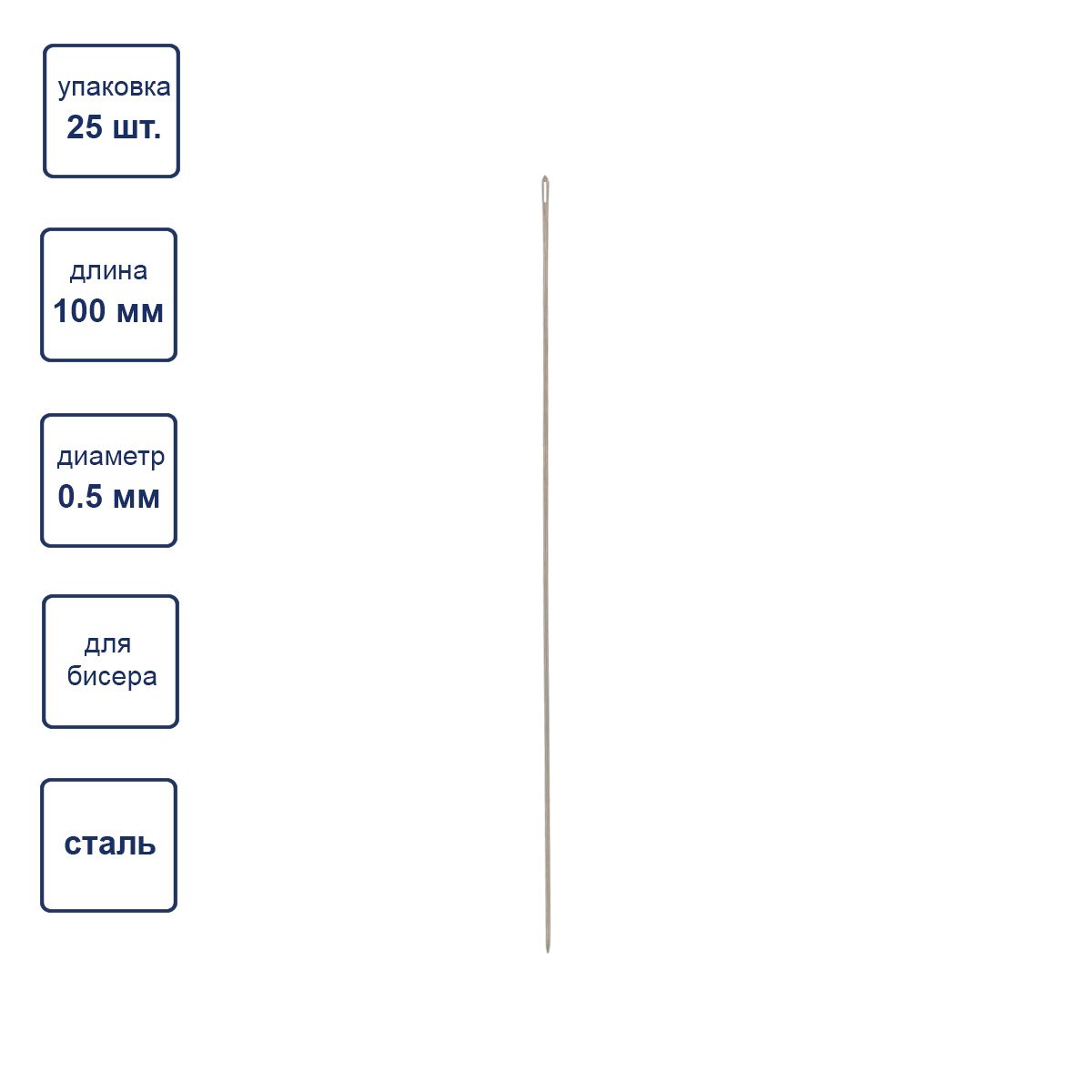 МАТЕРИАЛ металл СТРАНА Китай РАЗМЕР длина 100мм, толщина 0,5мм КОЛ-ВО В УПАКОВКЕ 25 шт. Иглы бисерные "Gamma" №100 тонкие, длинные, гибкие иглы. Толщина ушка и иглы одинаковая, что облегчает нанизывание бисера на иглу и нить.