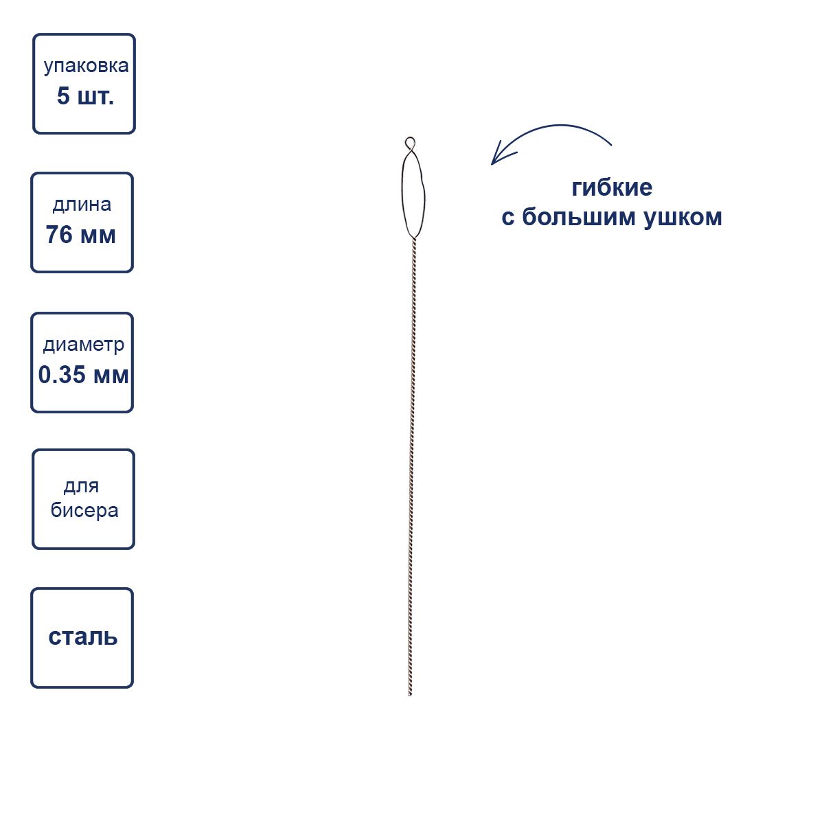 NC-302 Гамма Иглы гибкие бисерные с большим ушком 76мм 5шт.