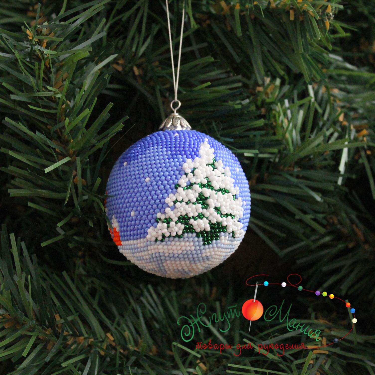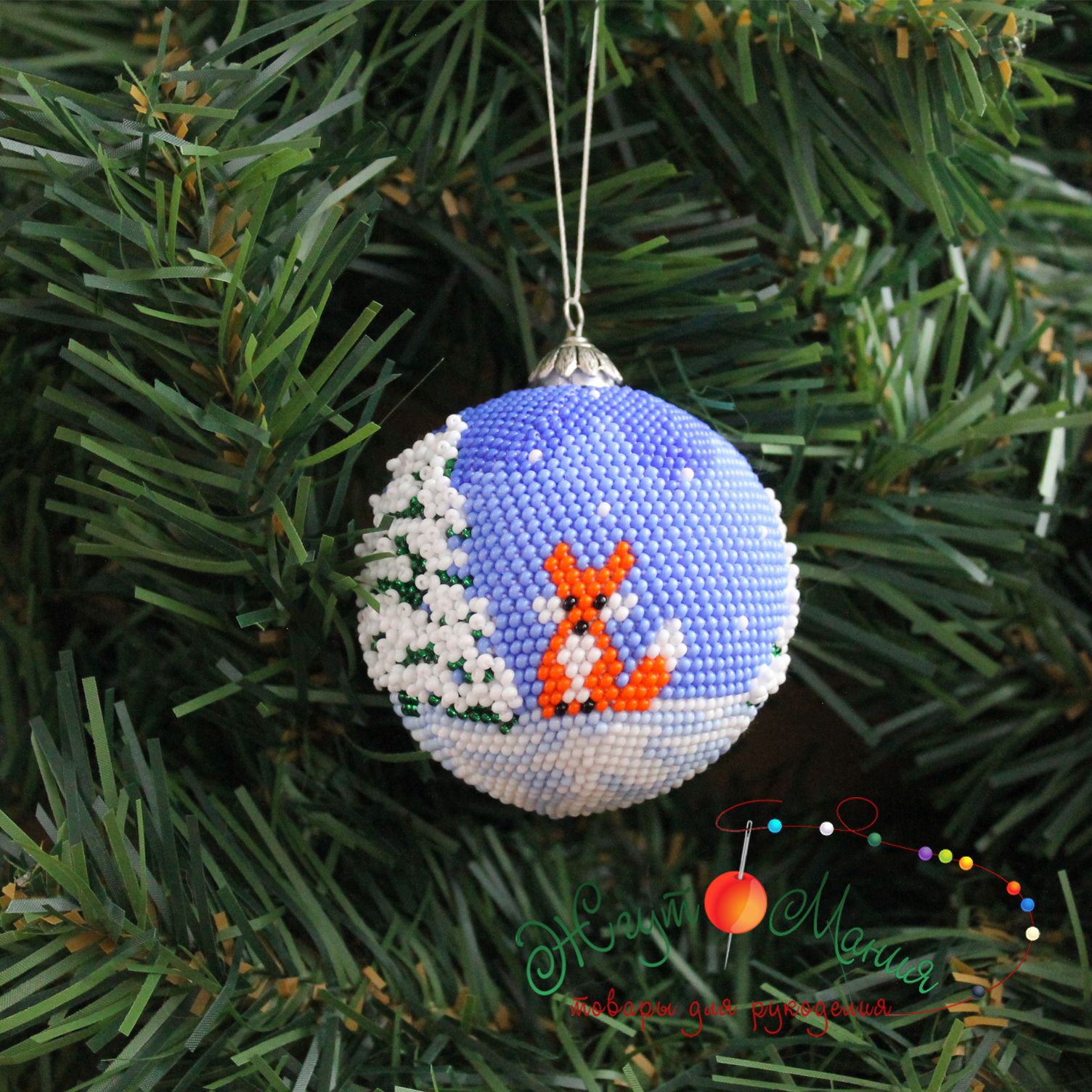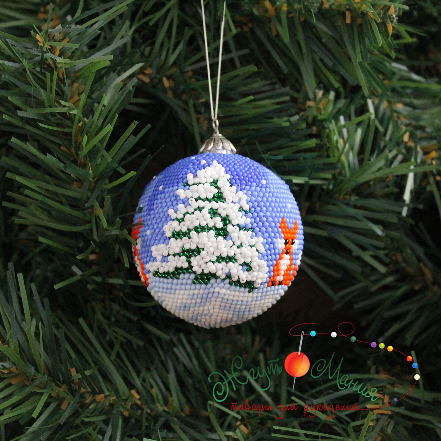 Шарик «Лисички" со снегом - 6см - Набор для вязания крючком с бисером от Ирины Рудевич