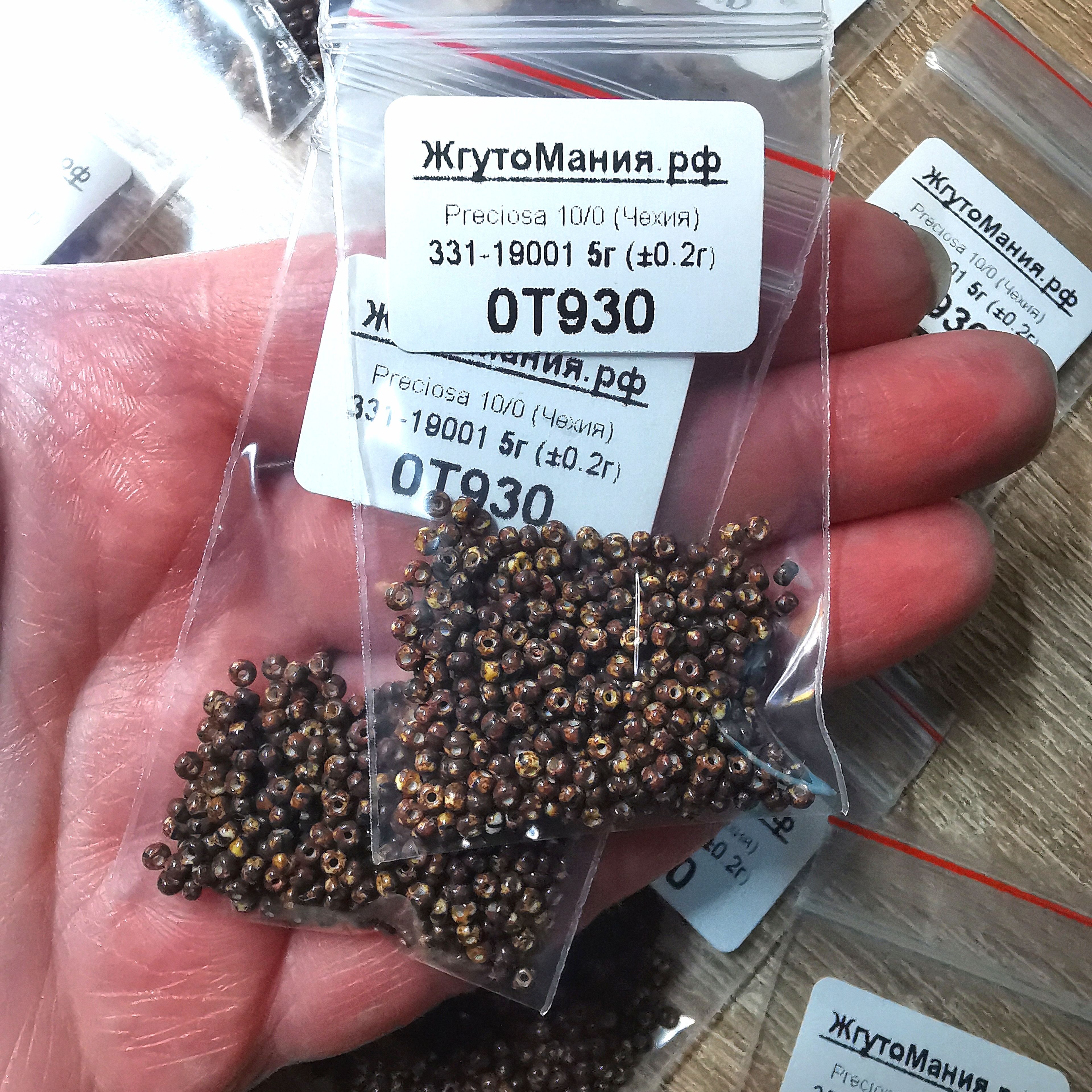 БИСЕР PRECIOSA 10/0 - 0T930 НЕПРОЗРАЧНЫЙ КОРИЧНЕВЫЙ ТРАВЕРТИН ( С ПОЛОСКАМИ) (5г)