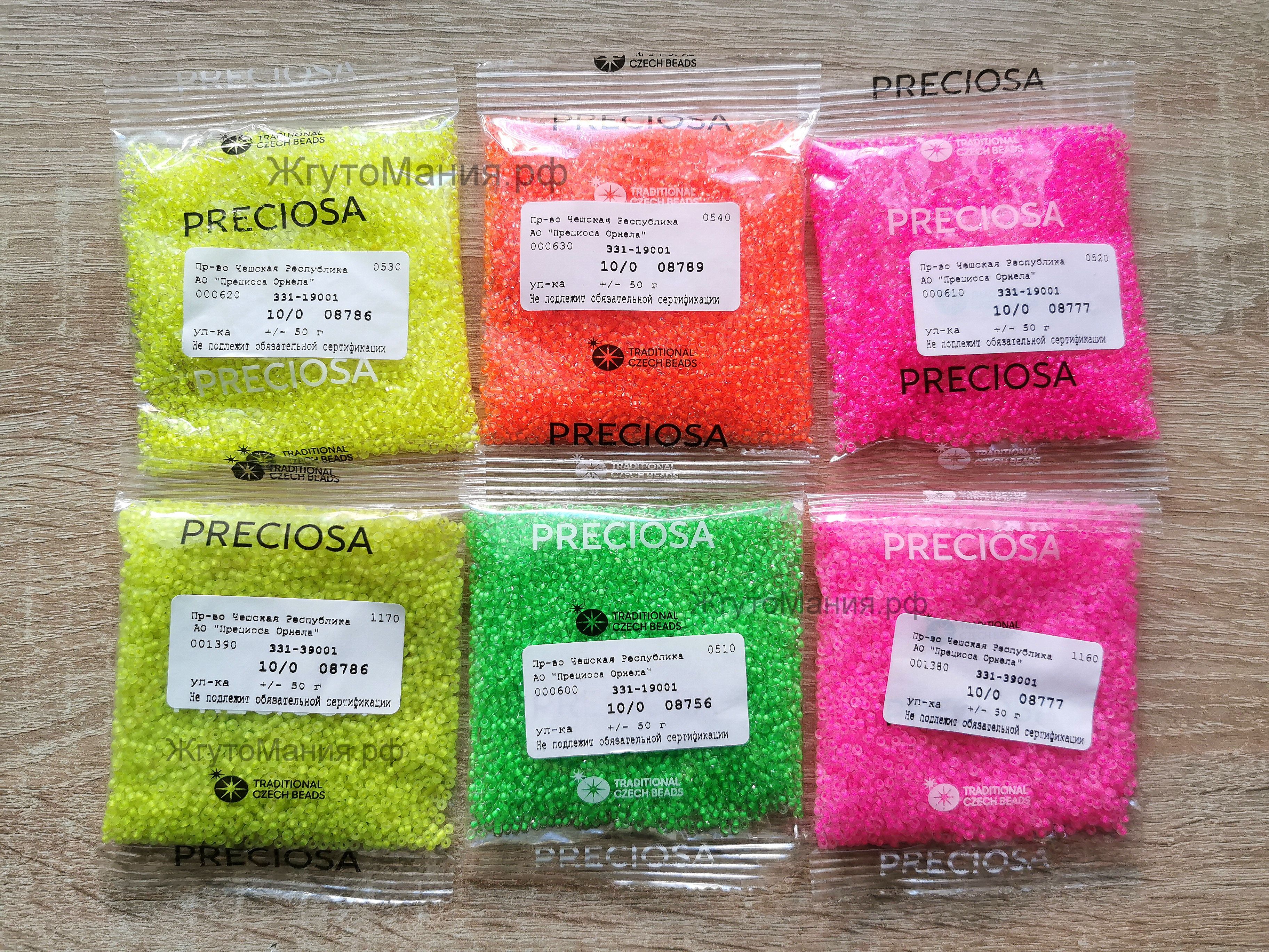 БИСЕР PRECIOSA 10/0 - 50г - 08777 ПРОЗРАЧНЫЙ С РОЗОВОЙ ЛИНИЕЙ ВНУТРИ (НЕОНОВЫЙ)