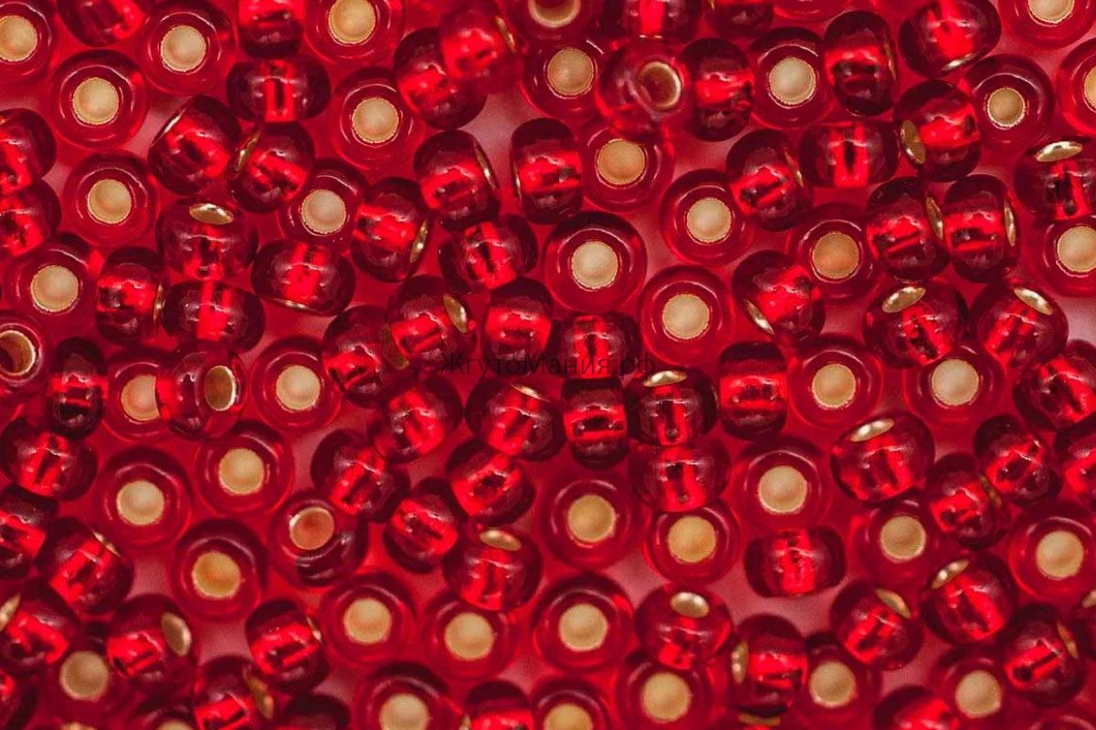 БИСЕР PRECIOSA 10/0 - 97070 ПРОЗРАЧНЫЙ С СЕРЕБРЯНОЙ ЛИНИЕЙ ВНУТРИ КРАСНЫЙ (ОГОНЁК) (5г)